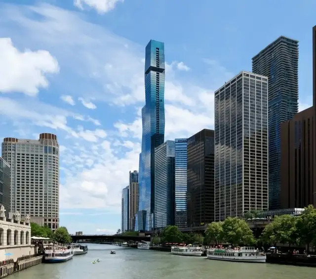2015年,Vista Tower项目定名为Wanda Vista Tower,并公布由著名女建筑师珍妮·甘设计的方案。大楼高350米,共101层,高度位列芝加哥第三,是中国内地地产公司在海外投资兴建的最高建筑。